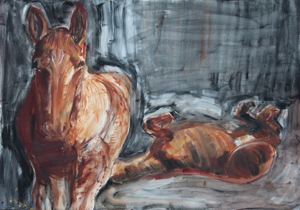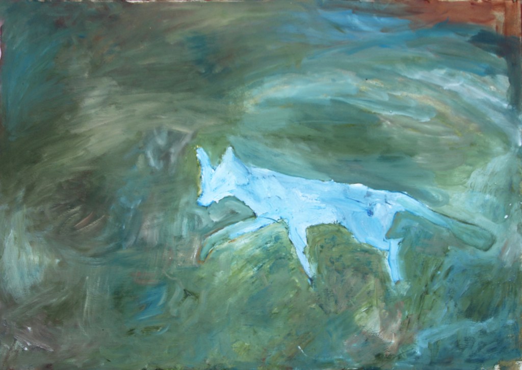 These paintings are recent and are all inspired by significant meetings with animals. The more truly I live, the more deeply I dwell in the interconnectivity of our world. Our human desire to elevate ourselves above other species is becoming more and more nonsensical to me.